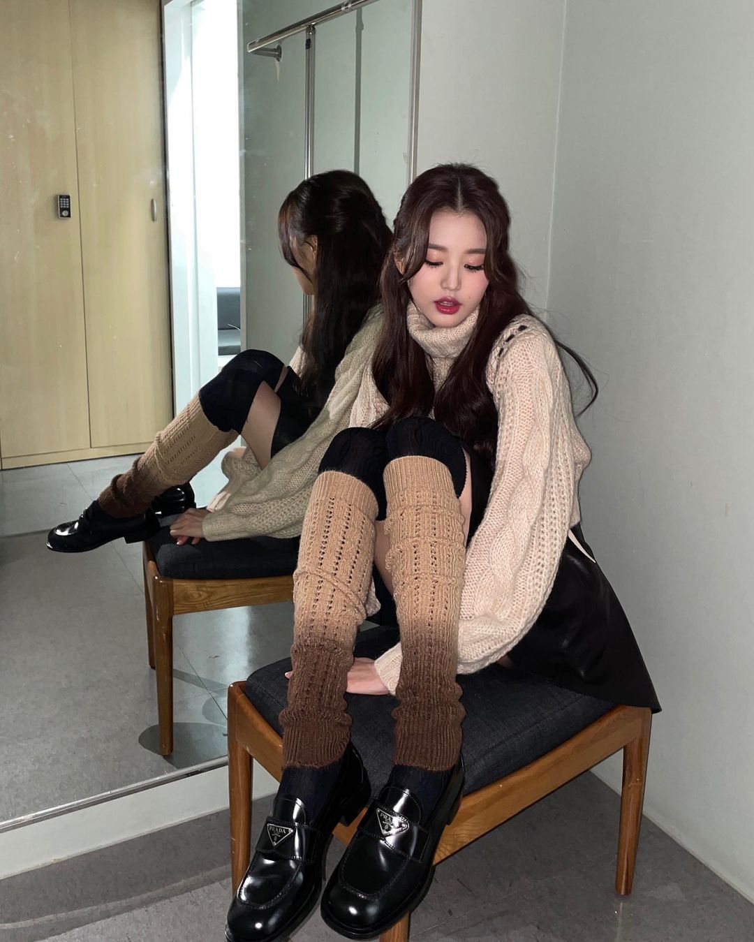 Jisoo (Black Pink) mặc hoddie dáng dài theo kiểu giấu quần kết hợp với tất đùi.