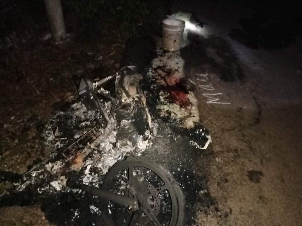 Theo Người Lao Động, lực lượng chức năng có mặt tại hiện trường và ghi nhận 1 chiếc xe máy đã bị thiêu rụi, một vài mảnh áo, một ít tóc người còn sót lại.