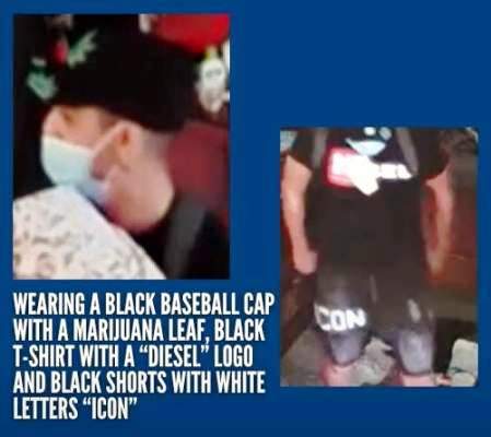 Cảnh sát mô tả nghi can là một thanh niên từ 20 đến 30 tuổi, thân hình lớn trung bình, mang nón baseball đen với hình lá cần sa, mặc áo thun đen có phù hiệu xăng “Diesel,” mặc quần đùi đen với chữ “ICON” trắng, và mang giày hiệu Nike đen.