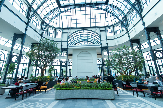 Ngay tại quảng trường rộng lớn, cư dân và du khách có thể thưởng thức thể giới ẩm thực từ PhinDeli tạidinh thự ánh sáng Garden Palace kiến trúc nhà kính độc đáo, hội du thuyền Aqua Yacht Club, nhà hát bên sông Aqua Theatre; phố mua sắm thời thượng...