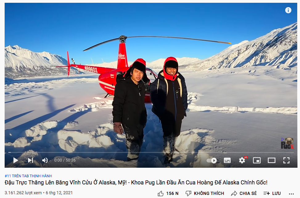 Thành tích có lẽ là vang dội nhất từ khi Khoa Pug làm YouTube tới nay có lẽ là việc “hạ cánh” 3 vị trí trên top trending YouTube Việt Nam cùng lúc chỉ trong 1 tuần. Đặc biệt, video bóc phốt đầu tiên của Khoa Pug c̣n trụ vững hạng 1 suốt từ lúc được đăng tới nay. Video tháo chạy Alaska c̣n có số comment cao “đột biến” hơn 287k. Đến sao Vbiz cũng chưa đạt được số lượng lẫn chất lượng như thế này!
