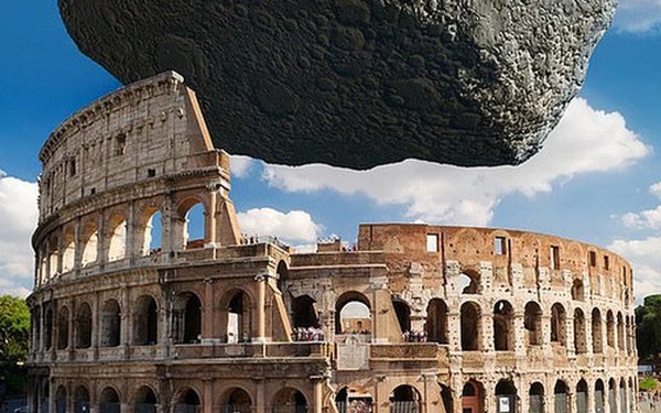 Kích thước của tiểu hành tinh Dimorphos khi so với Đấu trường La Mã ở Rome - Ý. Ảnh: ESA