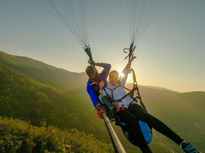 Bạn Phạm Ngọc Minh, hiện đang là chuyên viên Hỗ trợ Khởi nghiệp - ĐHQGHN, giáo viên Tiếng Anh và cũng là một YouTuber ở Hà Nội, cho biết, tình cờ tìm thấy bài đăng về dù lượn trên cao trên mạng, “quá hoàn hảo cho một cuộc hẹn trên không”, Minh và bạn không ngần ngại xách ba lô và đi ngay.