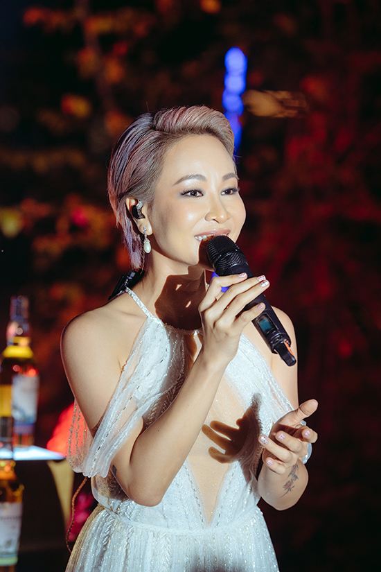 Xuất hiện tại sự kiện tối qua cùng Jennifer Phạm, ca sĩ Uyên Linh cũng chọn váy xẻ ngực táo bạo.