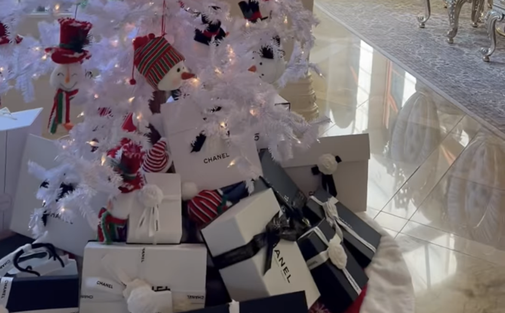 Nếu theo dõi Mimi Morris, hẳn nhiều người cũng biết, mỗi năm nữ đại gia lại có một kiểu decor Noel khác nhau. Tuy nhiên dù thay đổi thế nào thì cũng đều có 1 điểm chung là những hộp quà mang tên những thương hiệu nổi tiếng như Chanel, D&G, Dior, Hermes,... chất đầy phía dưới cây Giáng sinh. Đẳng cấp nhà giàu thực sự!