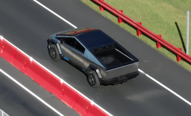 Chiếc Cybertruck chạy thử nghiệm trên đường.