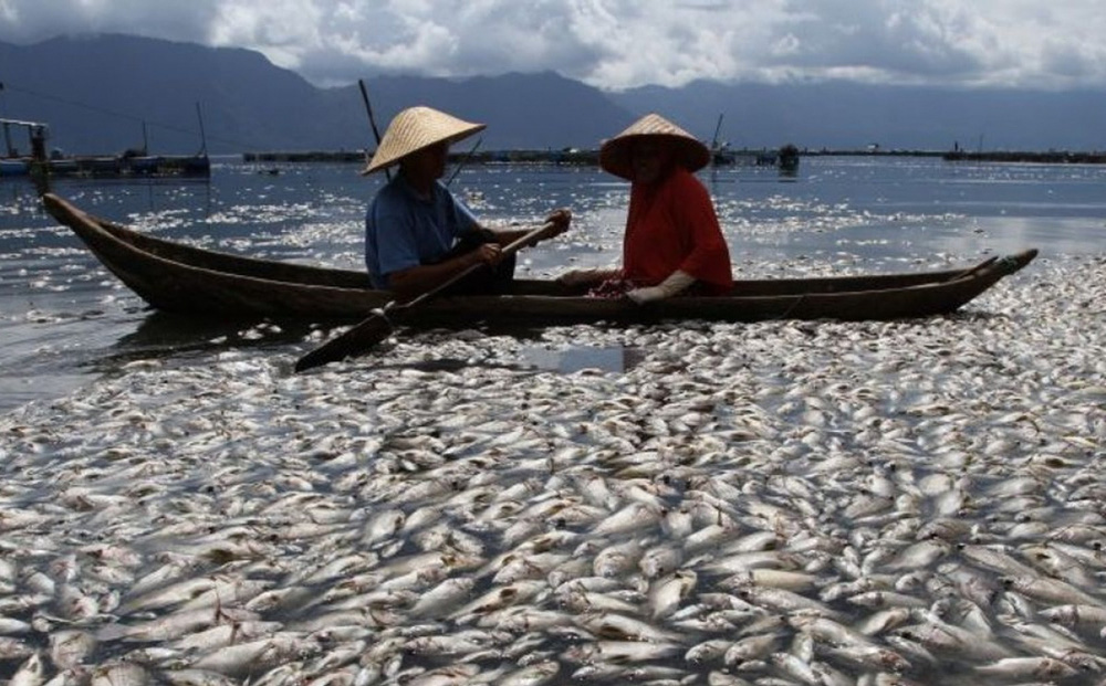 Khoảng 200.000 tấn cá rô phi và cá chép nuôi trong các lồng nổi đã bị chết và trôi dạt phủ đầy mặt hồ Maninjau ở huyện Agam thuộc tỉnh Tây Sumatra.