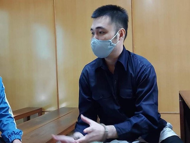 Chiến quay lại nói chuyện với vợ (được tại ngoại) khi tòa nghị án. Ảnh: H.YẾN