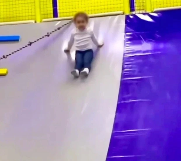 Đoạn video khiến người xem cũng thót tim khi một đứa trẻ lớn hơn đã buông tay khỏi một sợi dây đàn hồi trên bức tường leo núi ngay khi Ksenia trượt xuống. Kinh hoàng thay, sợi dây có độ co giãn nên bật trở lại và quấn quanh cổ cô bé như thòng lọng trong khi Anastasia chứng kiến toàn bộ sự việc và hét lên kinh hãi.