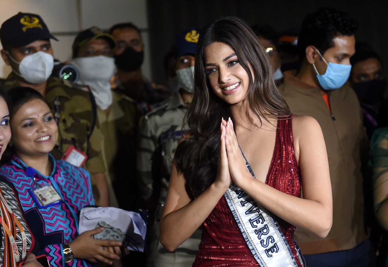 Những hình ảnh của tân Miss Universe Harnaaz Sandhu tại sân bay khi về nước nhận được sự quan tâm lớn của công chúng.