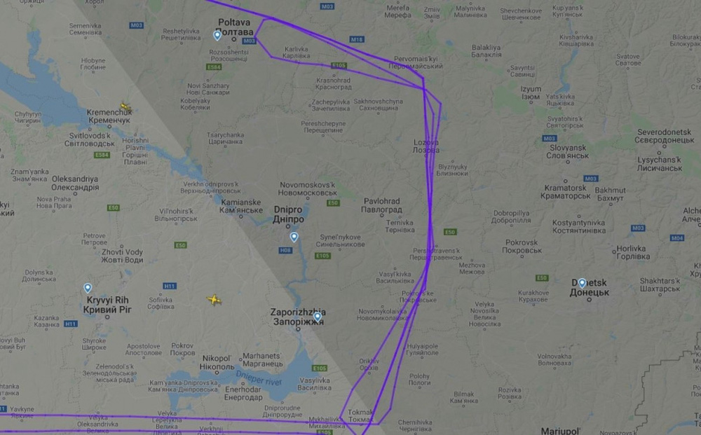 Lực lượng phòng không của hai nước cộng hòa tự xưng Donetsk (DPR) và Lugansk (LPR) sẵn sàng tấn công bất kỳ máy bay nước ngoài nào bay qua Donbass. (Ảnh: Flightradar24)