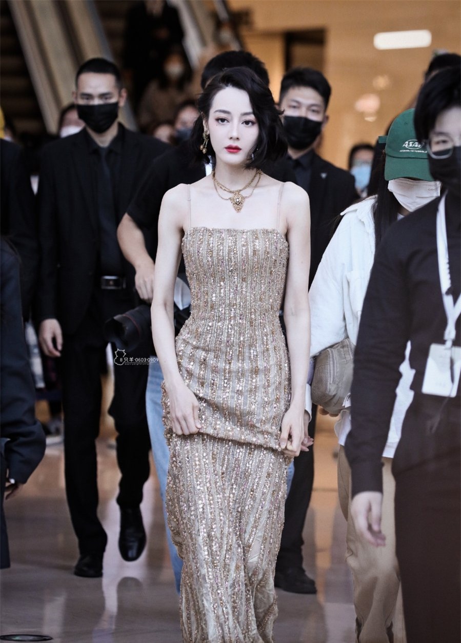 Xuất hiện trong sự kiện vào chiều ngày 14/10, Nhiệt Ba lại làm bùng nổ mạng xã hội với nhan sắc và body đẹp như tượng tạc. Dáng váy hai dây màu vàng kim tôn lên vẻ yêu kiều.