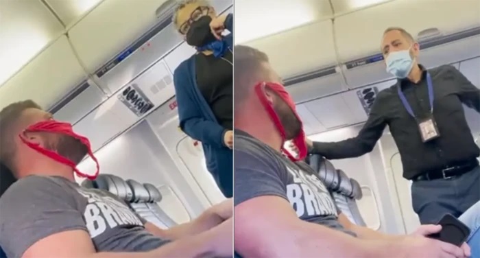 Theo như trong đoạn video lan truyền trên mạng xã hội, nam hành khách Adam Jenne bị các tiếp viên yêu cầu xuống máy bay vì không đeo khẩu trang phù hợp, sau khi nhìn chiếc khẩu trang của người đàn ông, ngay cả những người tự nhiên nhất cũng phải “đỏ mặt”.