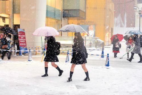 Bất chấp thời tiết giá lạnh, nữ sinh ở Nhật Bản vẫn có thói quen mặc váy ngắn đồng phục để đến trường mỗi ngày vào mùa đông.