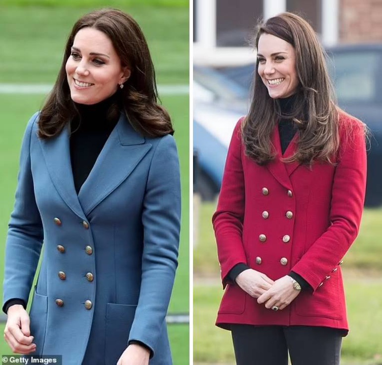 Khi nhận thấy một thiết kế nào đó phù hợp với mình, công nương Kate của Hoàng gia Anh luôn cùng lúc mua hai màu khác biệt, điều này giúp cô không bị "mang tiếng" là mặc lặp lại một món đồ quá nhiều lần. Cô có thể tự tin mặc một thiết kế tôn dáng, phù hợp với mình ít nhất trong hai màu sắc khác biệt.