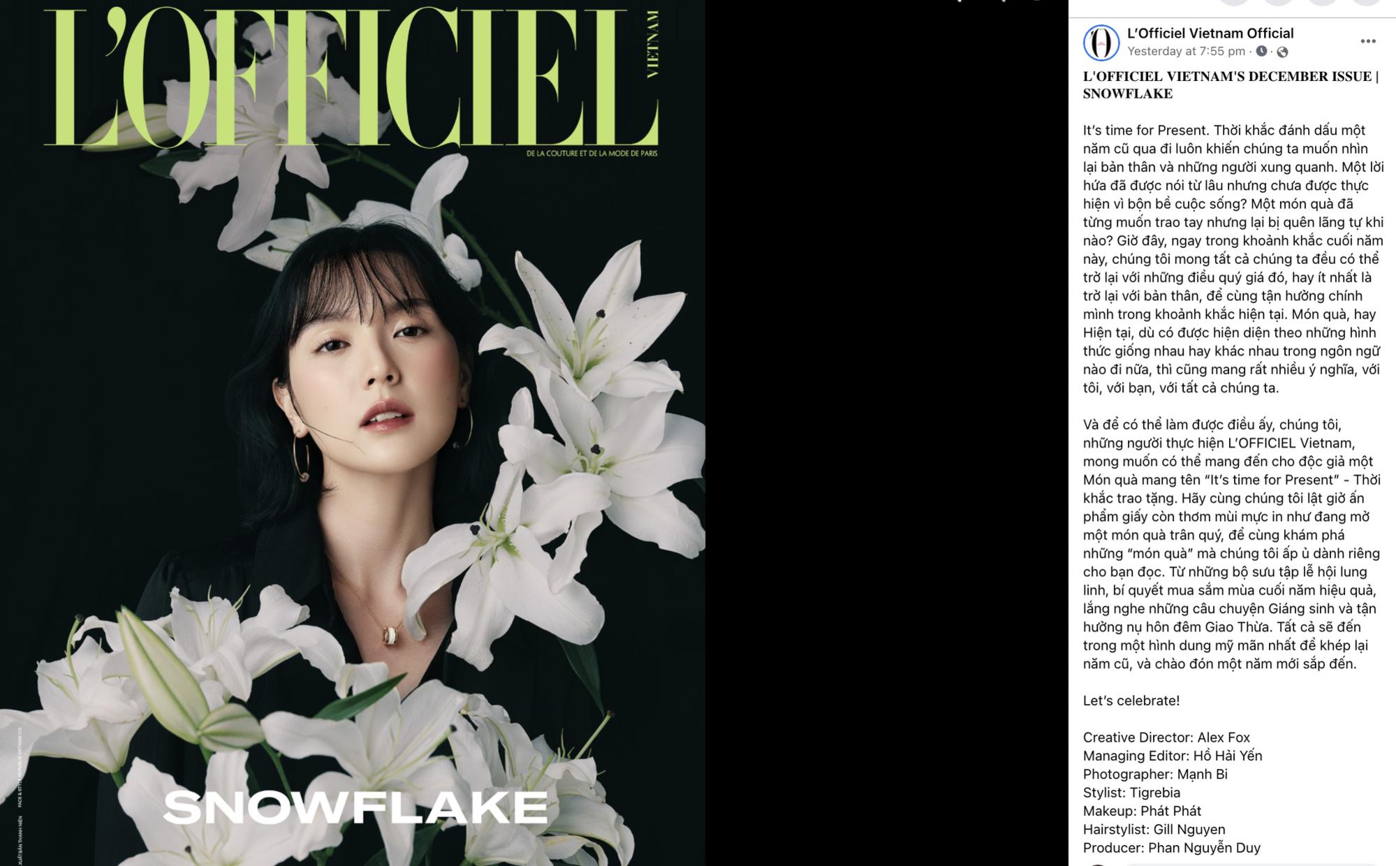 Hình ảnh do Hải Tú đăng tải đã bị cắt hết tên thương hiệu tạp chí L’OFFICIEL