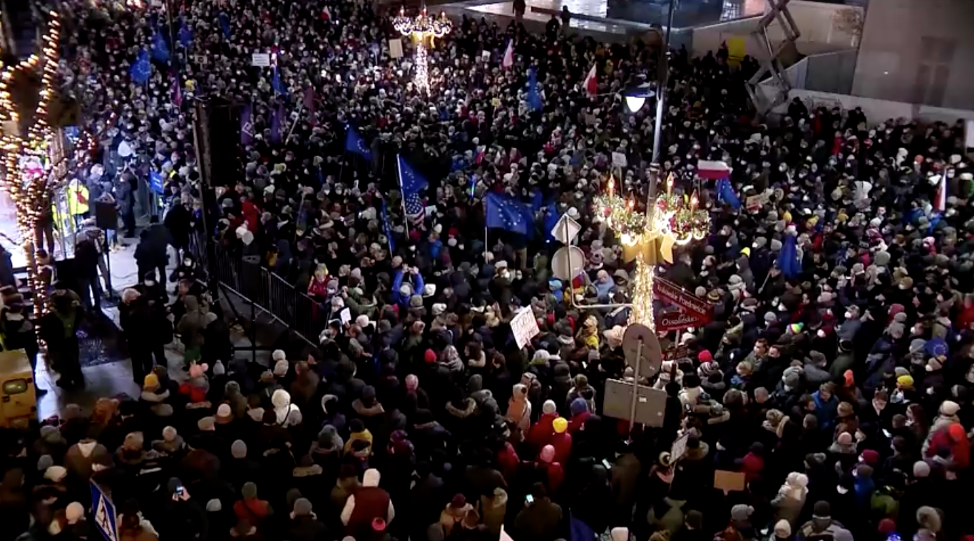 Đoạn phim của TVN24 cho thấy những người biểu tình ở Warsaw vẫy cờ Ba Lan và Liên minh châu Âu, đồng thời hô vang khẩu hiệu “Free Media”. Các cuộc biểu tình diễn ra trên toàn quốc. Những hình ảnh từ phía nam thành phố Krakow cho thấy những người biểu tình giơ cao các biểu ngữ có những dòng chữ “Hands off TVN” và “Free Poland, Free People, Free Media”. Tính đến 19:20 GMT, hơn 1.5 triệu người đã ký đơn yêu cầu để bảo vệ TVN24.