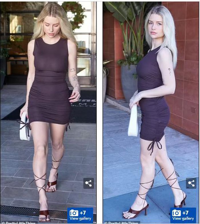 Trước đó, cô chụp ảnh với áo tắm cắt xẻ cũng của PrettyLittleThing.
