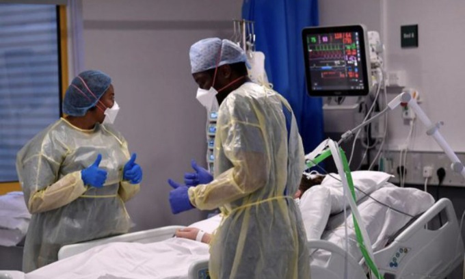 Nhân viên y tế điều trị cho bệnh nhân tại Anh hồi tháng 1. Ảnh: Reuters.