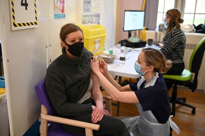 Người phụ nữ được tiêm mũi vaccine tăng cường tại điểm tiêm chủng ở thị trấn Belper, hạt Derbyshire, Anh hôm 16/12. Ảnh: AFP.