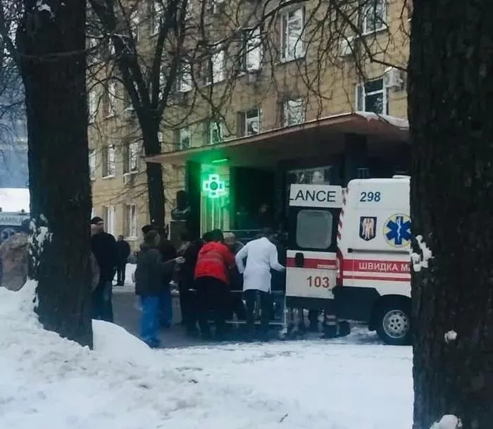 Những thương binh và xác của các quân nhân Ukraine, đầu tiên được đưa đến một bệnh viện địa phương; qua những hình ảnh, hiện vẫn chưa thể đánh giá số lượng của những người thiệt mạng.