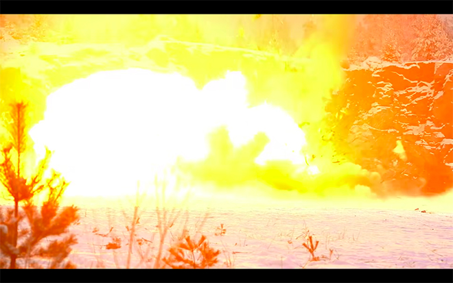 Các camera quay chậm, độ nét cao đã ghi lại toàn bộ vụ tàn phá. 30kg thuốc nổ là quá đủ để phá hủy hoàn toàn chiếc xe, không để lại gì ngoài những bộ phận vỡ vụn nằm ngổn ngang trên tuyết.