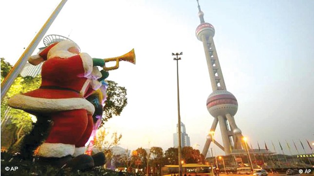 Trang trí nhân lễ Giáng sinh ở gần Tháp truyền h́nh Thượng Hải
