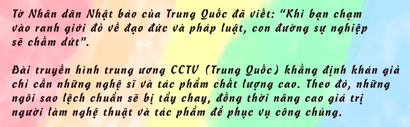 Sau vụ việc của Ngô Diệc Phàm, giới chức Trung Quốc quyết định hành động mạnh mẽ, ra một loạt văn bản chấn chỉnh hành động, đạo đức, lối sống của giới nghệ sĩ.