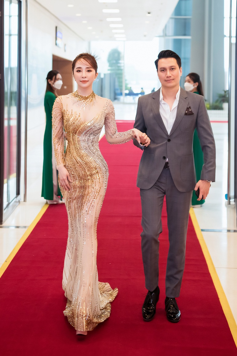 Quỳnh Nga quấn quýt Việt Anh. Có thể nói đây là lần đầu Việt Anh, Quỳnh Nga công khai "gần thêm chút nữa" trên thảm đỏ. Việt Anh vui vẻ, thân thiết đỡ tay Quỳnh Nga.