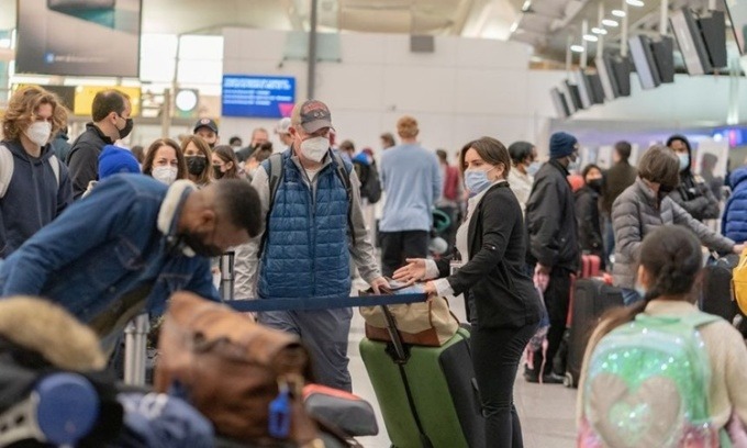 Hành khách tại sân bay John F. Kennedy ở New York ngày 26/12. Ảnh: Reuters.