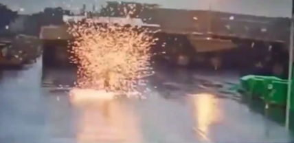 Old  Default Cầm bộ đàm đi dưới mưa, nhân viên bảo vệ bị sét đánh tóe lửa
