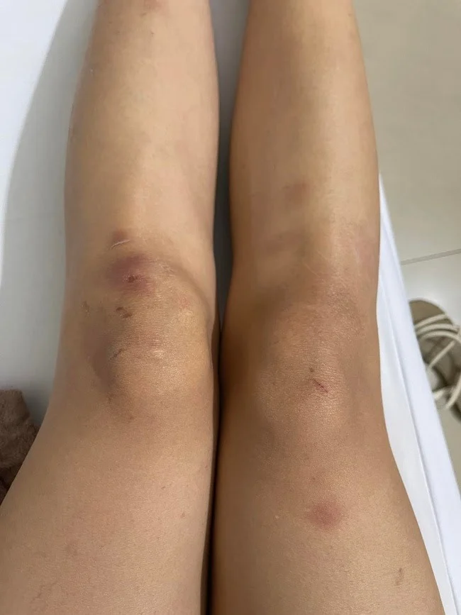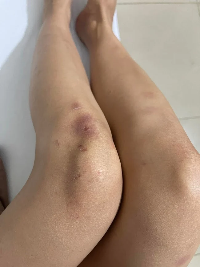 Hình ảnh tay chân bầm tím của Sam khiến người hâm mộ xót xa. Ảnh: FBNV