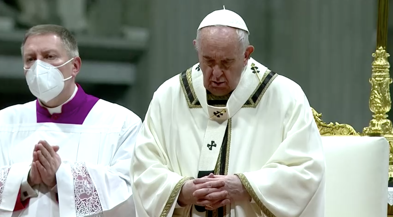 Đức Phanxicô, bắt đầu lễ Giáng sinh thứ chín của triều đại giáo hoàng của ngài, đã cử hành thánh lễ canh thức trọng thể tại Vương cung thánh đường Thánh Phêrô cho khoảng 2,000 người, với sự tham gia bị giới hạn ở mức 1/5 so với những năm trước đại dịch. Đức Phanxicô, mặc lễ phục màu trắng, xoay quanh bài giảng của ngài với chủ đề rằng Chúa Giê-su sinh ra trong hoàn cảnh không có gì.