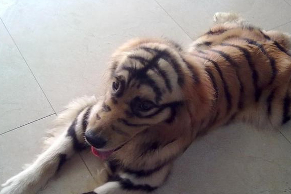 Hóa ra, con trai anh nhân lúc bố mẹ không có nhà đã có một màn biến hóa chú chó cưng nhà anh thành một con hổ. Lọ mực vốn để anh rèn con luyện thư pháp giờ đây được cậu con trai đem ra tô vẽ lên lông của chú chó và đổ ra khắp nhà.