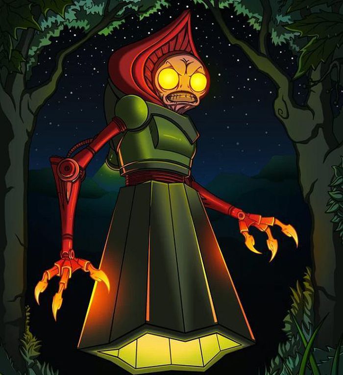 Thực tế, hình ảnh được mô tả lại giống như các lỗ chiếu ra nhiều chùm tia nhiều ánh sáng gồm màu xanh lục, màu cam... Phần thân của "quái vật" có diện mạo khá giống con người khi mặc bộ đồ đen giống như một bộ váy. Hai cánh tay của nó khá ngắn, thô và có những ngón tay dài như những móng vuốt.