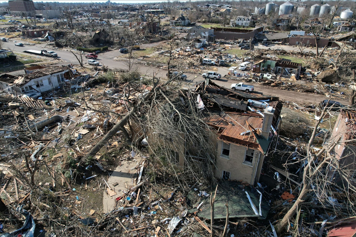 30 trận lốc xoáy xuất hiện đêm 10/12, càn quét 6 bang ở miền trung nước Mỹ, gồm Arkansas, Illinois, Kentucky, Missouri, Tennessee và Mississippi. Thống đốc Kentucky Andy Beshear mô tả đây là đợt lốc xoáy "tồi tệ nhất, tàn khốc nhất và chết chóc nhất trong lịch sử bang".