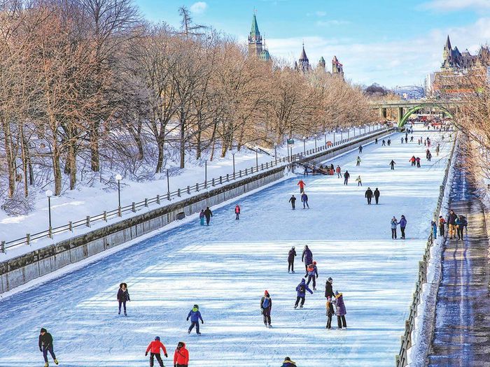 Winterlude ở Ottawa là một trong những lễ hội mùa đông lớn nhất thế giới và nổi tiếng với các tác phẩm điêu khắc trên băng, các buổi hòa nhạc ngoài trời, trượt băng... Tháng 1-2, du khách có thể trượt băng ở sân băng tự nhiên lớn nhất thế giới - kênh đào Rideau dài 7,8 km. Vào mùa đông người dân thường trượt băng qua con kênh này để đến trung tâm thành phố. Khách sạn Arc là nơi nghỉ dưỡng ấm áp, với bếp lửa ở sảnh và champagne chào mừng. Bạn có thể ghé Restaurant 18 ở phố York, nơi phục vụ các món ăn truyền thống. Ảnh: Paula Brown