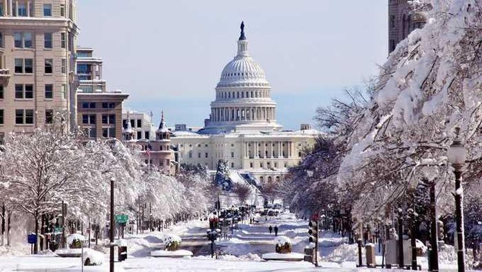 Đến thủ đô Mỹ, du khách sẽ được chiêm ngưỡng vẻ tráng lệ của Nhà Trắng và Đài tưởng niệm Lincoln trong tuyết trắng. Những sân trượt băng nổi tiếng của thành phố là Washington Harbor Ice Rink tại Georgetown, vườn Sculpture Garden tại công viên National Mall...