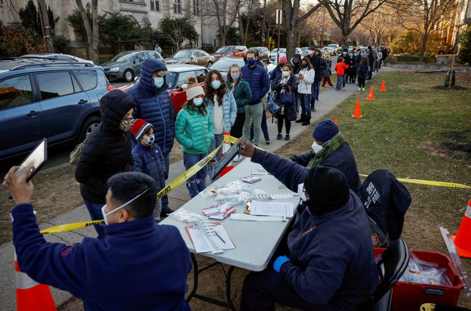Người dân xếp hàng chờ xét nghiệm Covid-19 miễn phí ở Washington, Mỹ. Ảnh: Reuters.