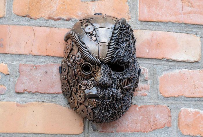 Những chiếc mặt nạ lấy cảm hứng từ Steampunk của Bragin trông 100% bằng kim loại, nhưng theo MyModernMet, đó chỉ là ảo ảnh được tạo ra với sự trợ giúp của sơn kim loại.