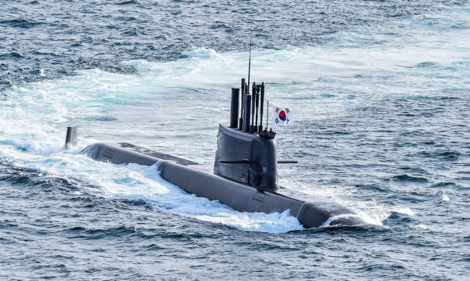 Tàu ngầm Dosan Ahn Chang-ho của Hàn Quốc trong quá trình thử nghiệm. Ảnh: Hải quân Hàn Quốc.
