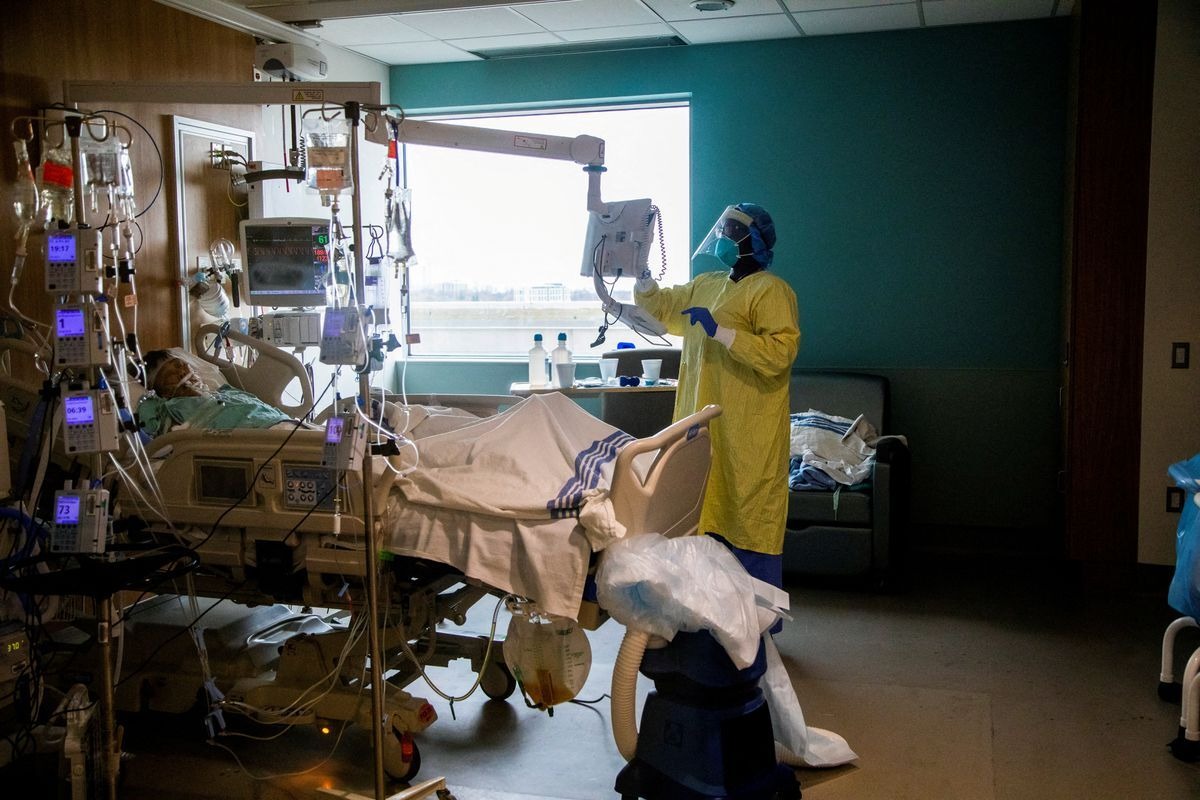 Nhân viên y tế kiểm tra tình hình một bệnh nhân Covid-19 tại Ontario, Canada vào tháng 11. Ảnh: Reuters.