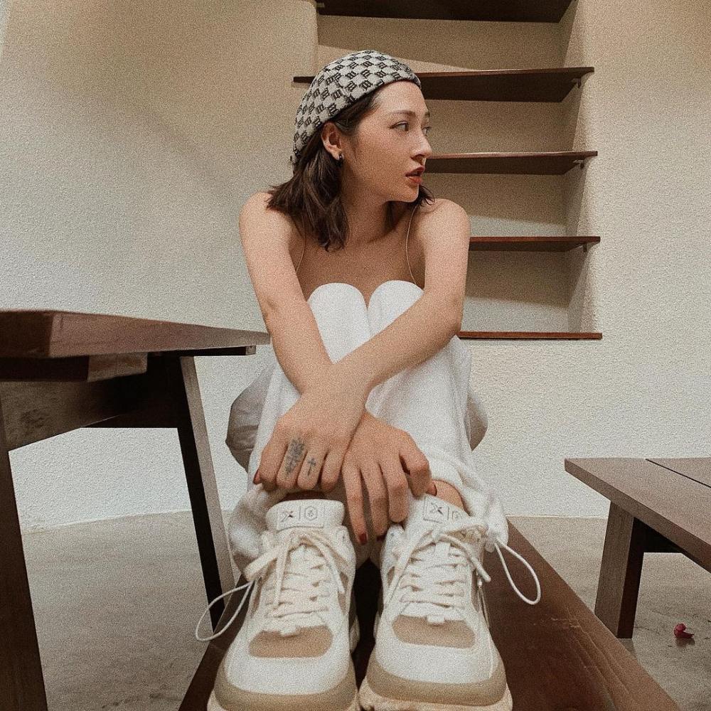 Không khó để bắt gặp Bảo Anh ăn vận theo phong cách năng động như thế này, Ở đây cô chọn diện áo hai dây kết hợp với quần rộng và giày thể thao.