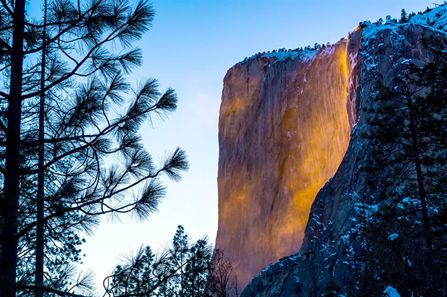 Firefall, Horsetail Fall, California: Trong phần lớn thời gian, Horsetail Fall trông giống như bất kỳ thác nước nào khác. Nhưng đến tháng 2 điều kỳ diệu sẽ xảy ra. Vào những ngày quang đãng, mặt trời sắp lặn chiếu tia sáng vào thác nước khiến nó có màu cam rực cháy trông như dung nham tràn ra sườn núi.