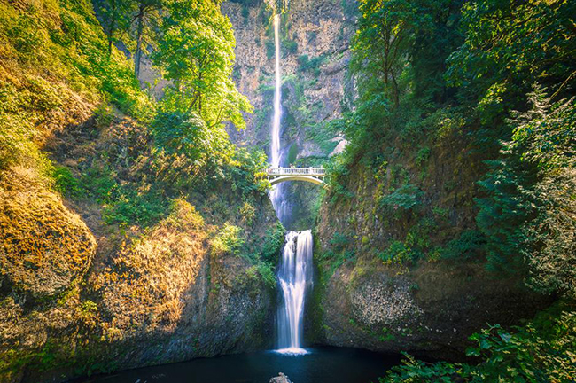 Thác Multnomah, Oregon: Hình ảnh thác nước đẹp tuyệt vời này sẽ khiến tim bạn run lên khi được chiêm ngưỡng nó. Với một dòng nước lớn, đổ xuống những mỏm đá cheo leo từ độ cao 182m, thác Multnomah 2 tầng chảy xuống một hồ nước xanh thẳm ở chân núi. Quang cảnh đẹp nhất của thác là khi xuất hiện bên dưới cầu Benson.