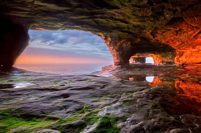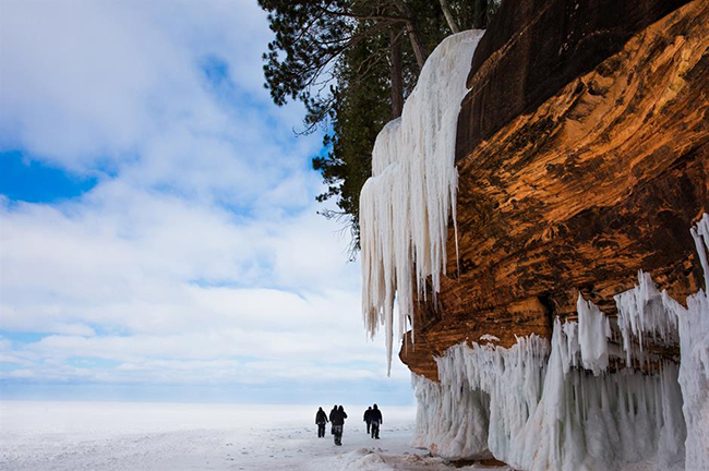 Động băng ở bờ hồ quốc gia quần đảo Apostle, Wisconsin: Nơi đây có muôn vàn kỳ quan thiên nhiên, từ những khối đá cheo leo, vách đá chắn gió cho đến những bãi cát dài... Nhưng không nơi nào hấp dẫn bằng những hang động băng hình thành ở đây vào mỗi mùa đông.