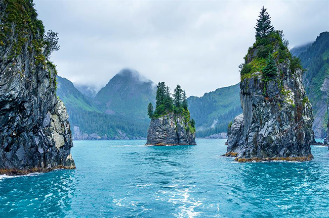 Vườn quốc gia Kenai Fjords, Alaska: Với làn nước xanh ngắt, khu vực này nổi bật với những tảng đá khổng lồ được xói mòn qua hàng thiên niên kỷ. Chúng là nơi sinh sống của các loài động vật như chim cốc và cá nóc, cùng với các loài dơi thường trú của công viên.