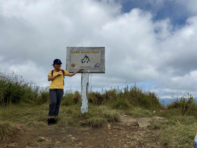 Cuối cùng sau 3 tiếng vượt nhiều địa hình, giữa trưa chúng tôi đến được đỉnh Langbiang cao 2.176m. Đỉnh núi Langbiang là nơi có thể ngắm toàn cảnh thị trấn Lạc Dương phía dưới, xung quanh là một màu xanh bát ngát của núi rừng. Nghe nói đây cũng là một địa điểm có thể cắm trại săn mây sớm. Còn chúng tôi chỉ chụp vội vài tấm hình rồi xuống núi.