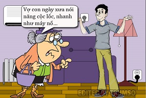 - Vâng, mẹ ơi, dạo này cô ấy chuyển sang tổng đài tư vấn có tính cước rồi!