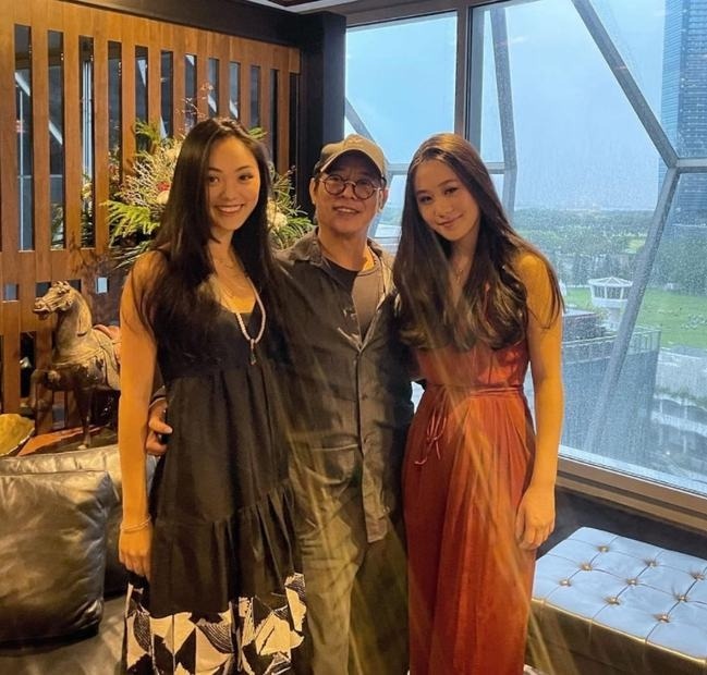 Lý Liên Kiệt cùng hai con gái trong ngày sinh nhật vợ. Ảnh: Instagram